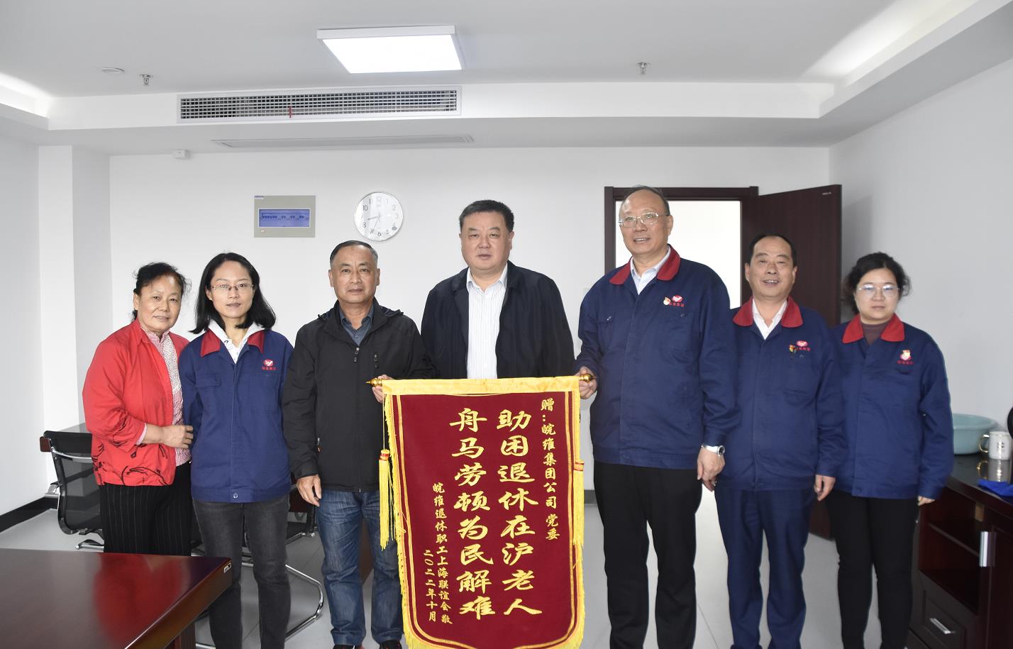 “感谢公司党委,关心我们远在上海的退休老职工,帮助我们解决了实际困难。”日前,两名上海退休老职工来到了集团公司党委书记、董事长吴福胜的办公室中,献上一面写有“助困退休在沪老人,舟马劳顿为民解难”的锦旗,向公司党委及相关部门负责人表达了真挚的感谢。